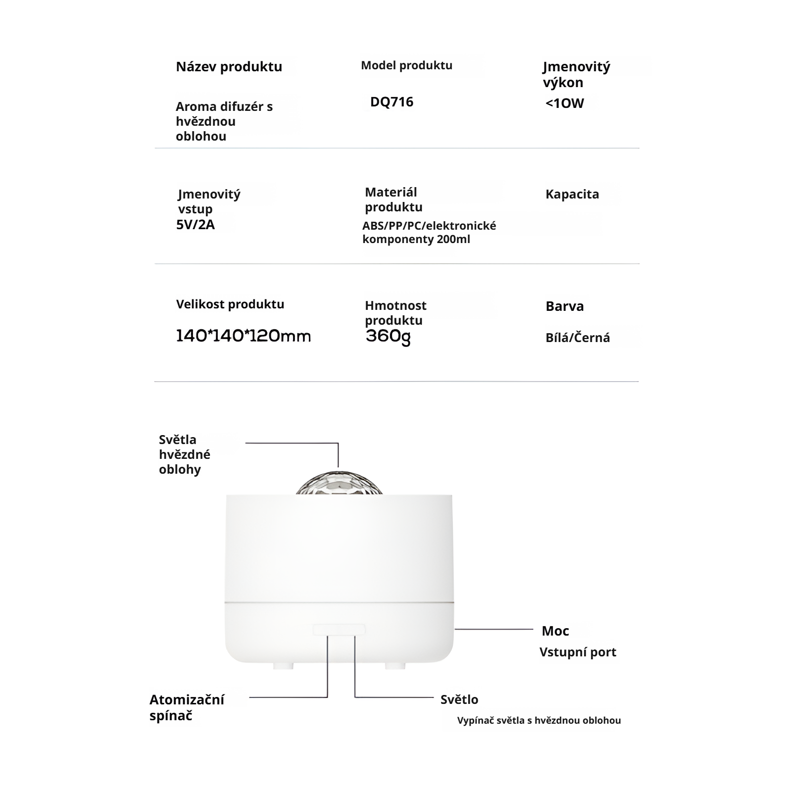 Hvězdná projekční aroma difuzér